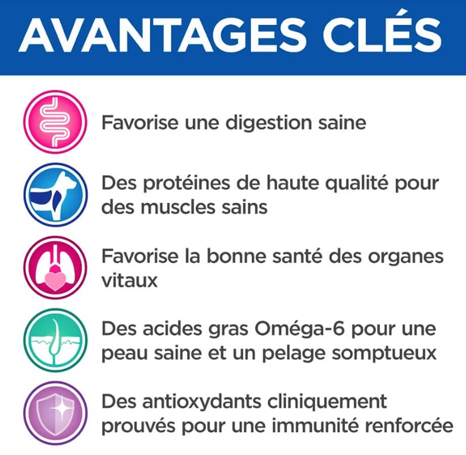 - Avec des acides gras oméga-6 pour une peau saine et un pelage somptueux