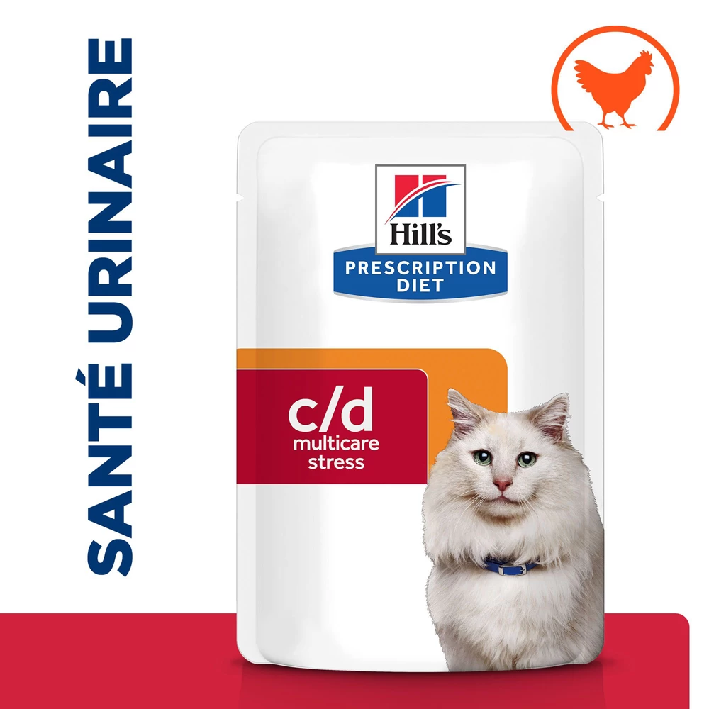 Les nutritionnistes & vétérinaires de Hill’s ont conçu PRESCRIPTION DIET c/d Multicare Stress une nutrition clinique spécialement formulée pour favoriser la santé urinaire du chat tout en gérant le stress. En fait, il est cliniquement prouvé que l’aliment c/d Multicare Stress réduit de 89 % le taux de récidive des signes urinaires les plus courants.