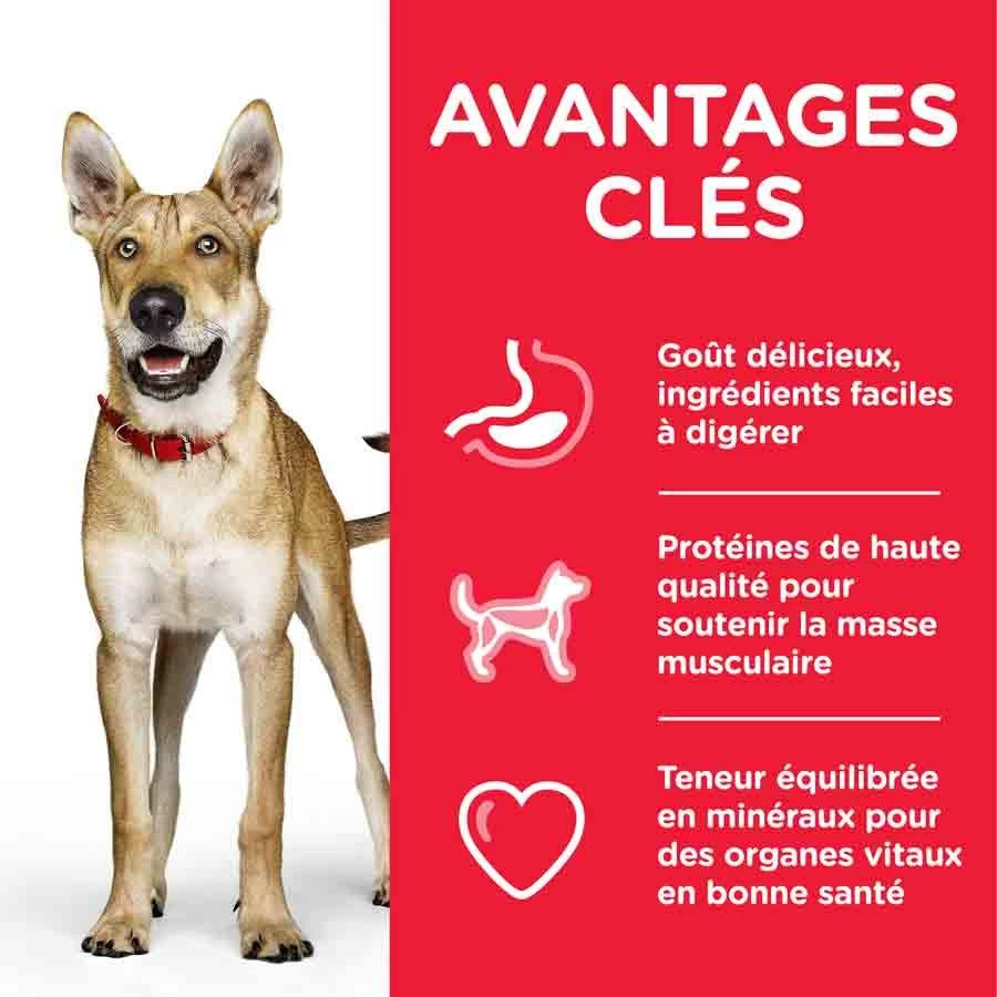 ▸ Cet aliment sec pour chiens aide à satisfaire les besoins élevés en énergie des chiens adultes actifs