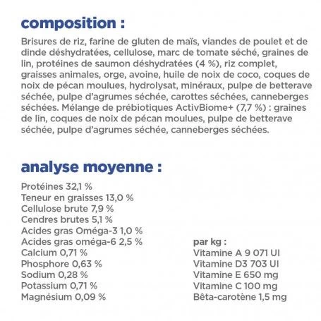 - Santu00e9 de la peau et du pelage: favorisent une peau et un pelage sains gru00e2ce aux acides gras Omu00e9ga-6 nourrissants